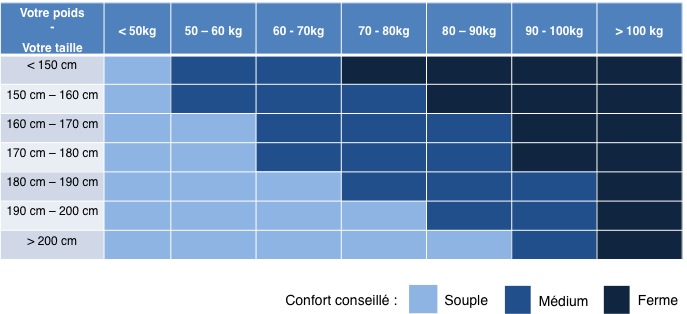 – Plus une personne est légère et grande, plus le matelas se doit d’être moelleux.
